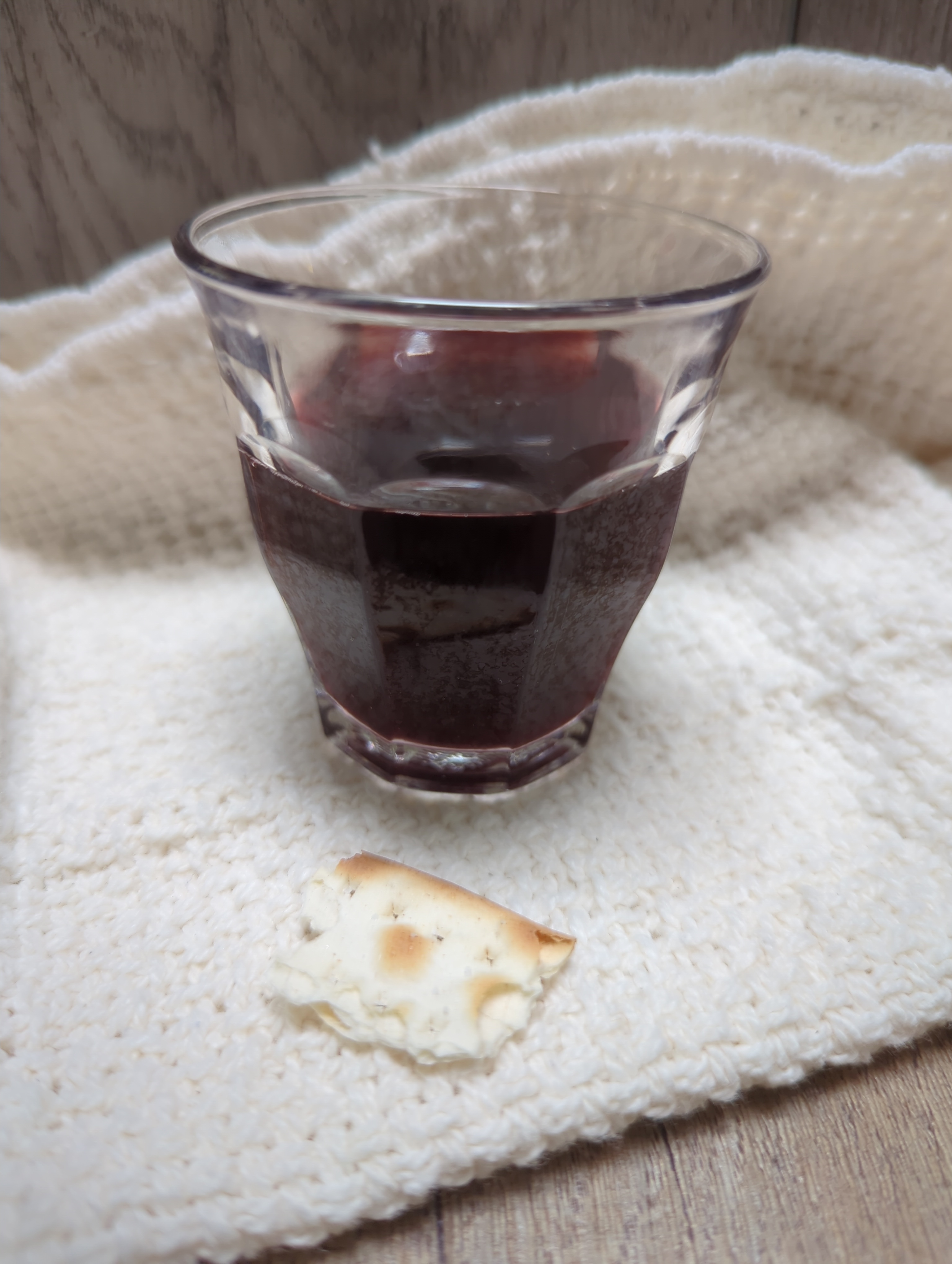 (17) And he took the cup, and gave thanks, and said, Take this, and divide [it] among yourselves:
